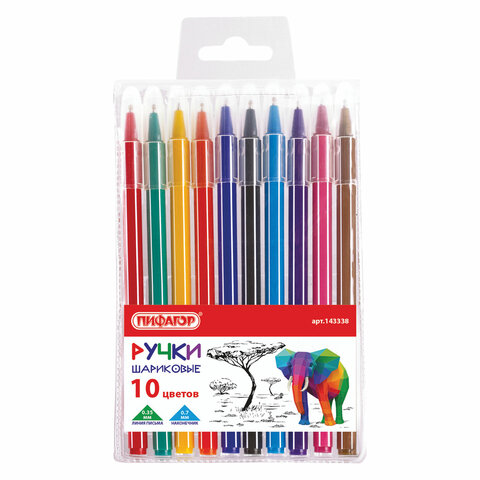 Шариковые ручки ПИФАГОР "Веселые зверята" прекрасно подходят для детского творчества: рисования, поделок и т.д. Набор одноразовых шариковых ручек из 10 цветов: голубой, красный, зеленый, черный, розовый, желтый, коричневый, синий, фиолетовый и оранжевый.Удобный шестигранный корпус и яркий дизайн. Цвет корпуса соответствует цвету чернил.Диаметр пишущего узла 0,7 мм создает тонкую линию письма, равную 0,35 мм.
