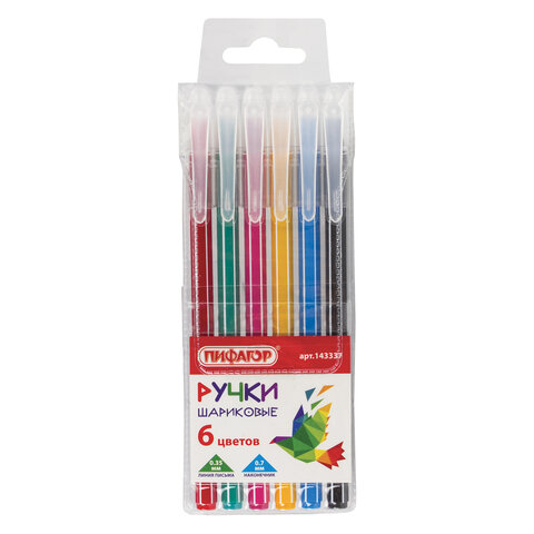 Шариковые ручки ПИФАГОР "Веселые зверята" прекрасно подходят для детского творчества: рисования, поделок и т.д. В наборе 6 одноразовых шариковых ручек с различными цветами чернил: голубой, зеленый, чёрный, розовый, красный и желтый. Удобный шестигранный корпус и яркий дизайн. Цвет корпуса соответствует цвету чернил. Диаметр пишущего узла 0,7 мм создает тонкую линию письма, равную 0,35 мм.