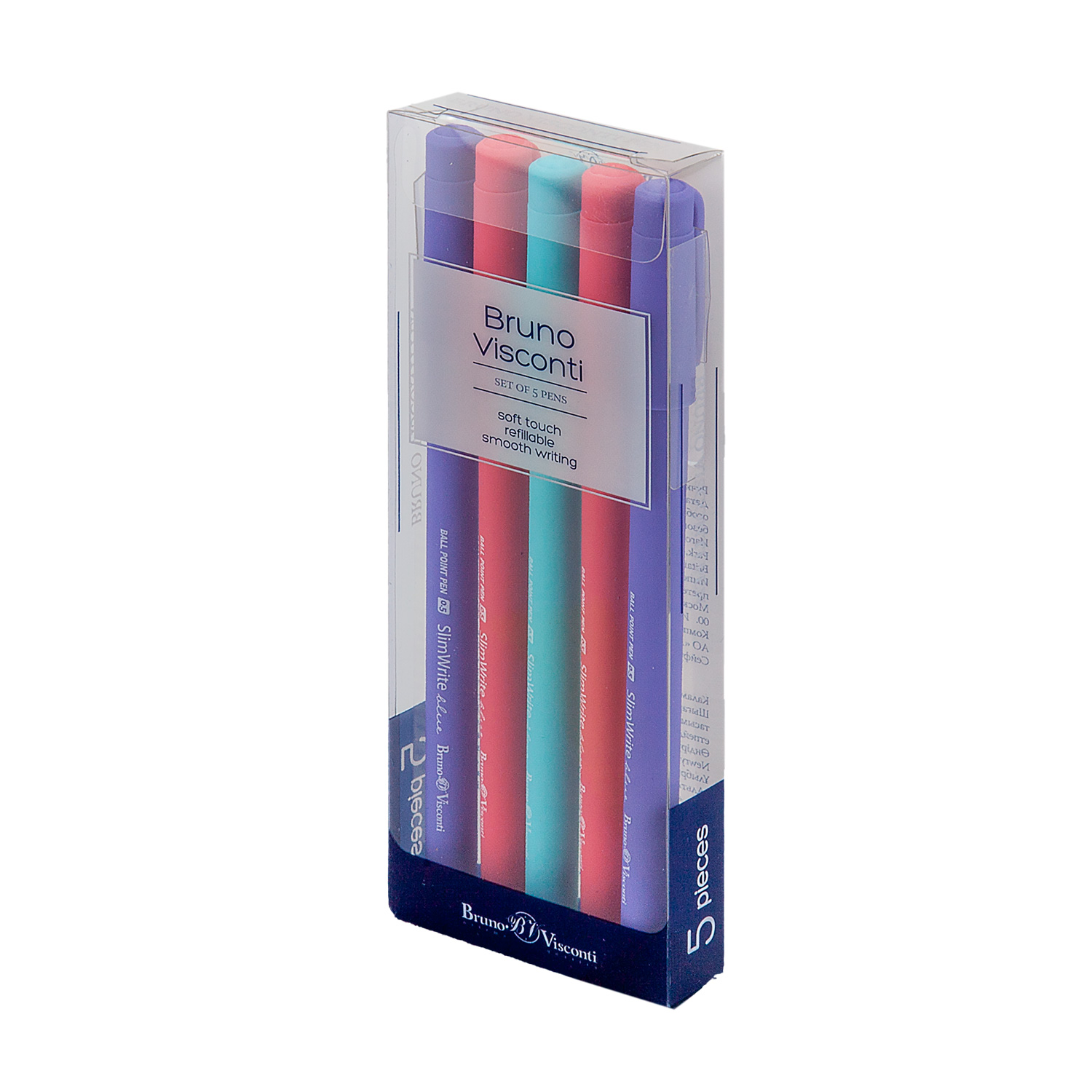 НАБОР ИЗ 5-ТИ РУЧЕК "SlimWrite.JOY" ШАРИКОВАЯ 0.5 ММ, СИНЯЯ