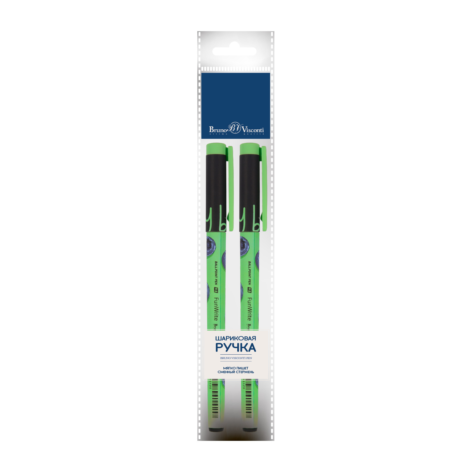 НАБОР ИЗ 2-Х РУЧЕК "FunWrite.Ягоды. Графика. Голубика" ШАРИКОВАЯ, 0.5 ММ, СИНЯЯ