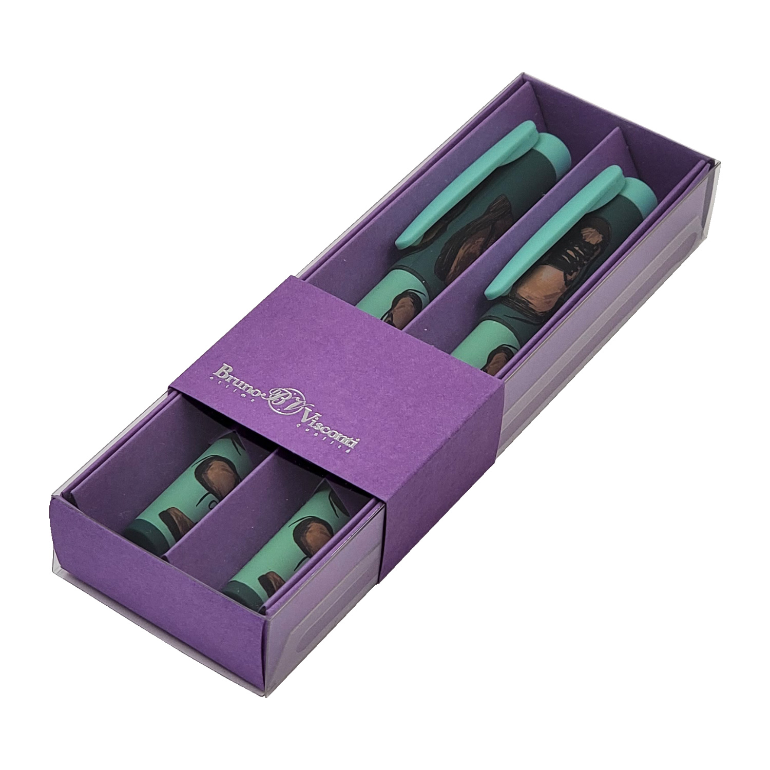 НАБОР ИЗ 2-Х РУЧЕК "FreshWrite. Boots. Зеленые ботинки", ШАРИКОВАЯ 0.7 ММ, СИНЯЯ (сиреневый футляр)
