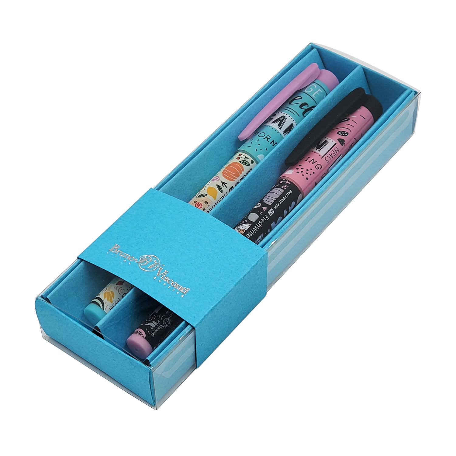 НАБОР ИЗ 2-Х РУЧЕК "FreshWrite. Vegan.Фруктовый микс/Ароматный кофе" ШАР., 0.7 ММ (голубой футляр)