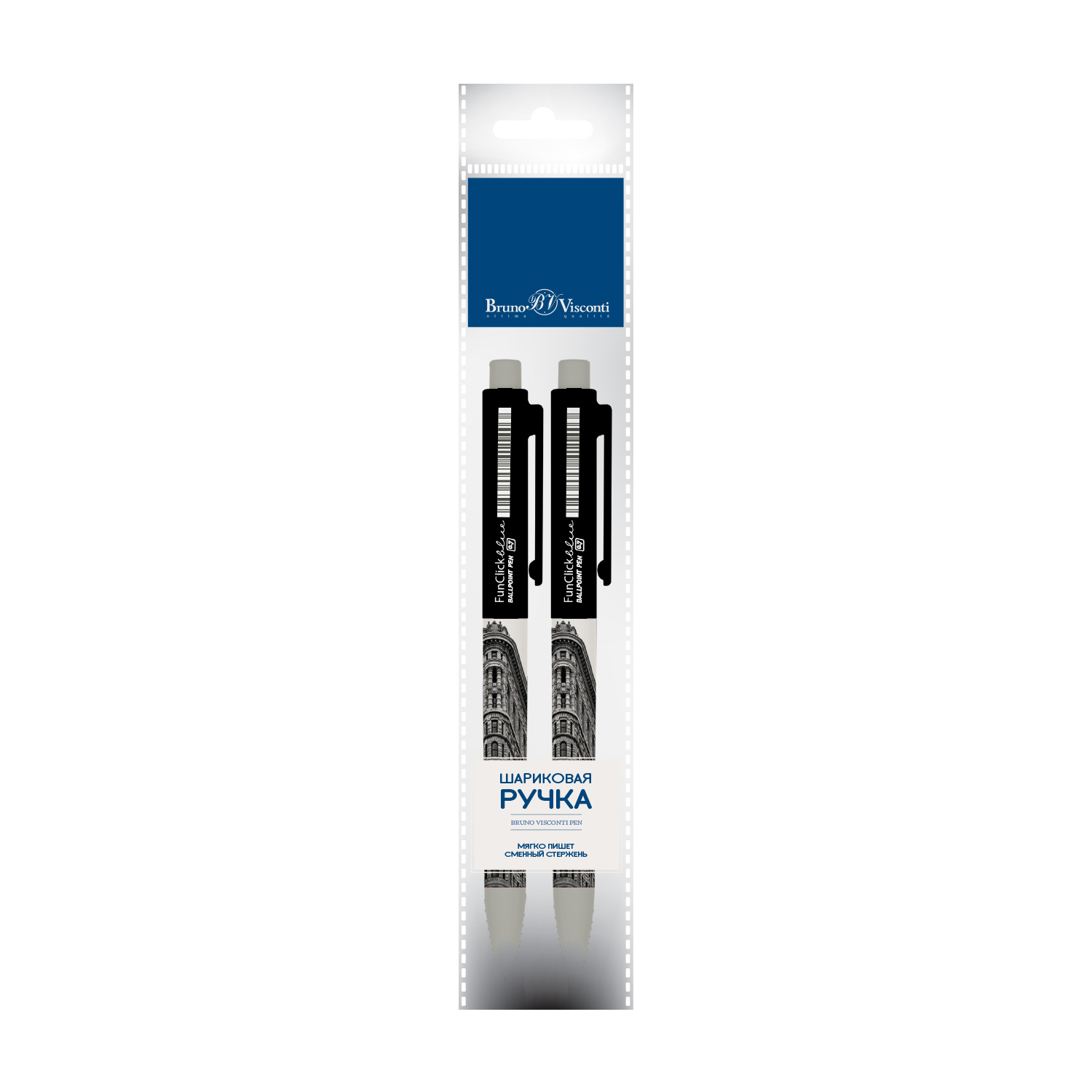 НАБОР ИЗ 2-Х РУЧЕК "FunClick. New York" (3 вида), ШАРИКОВЫХ АВТОМАТИЧЕСКИХ 0.7 ММ, СИНЯЯ
