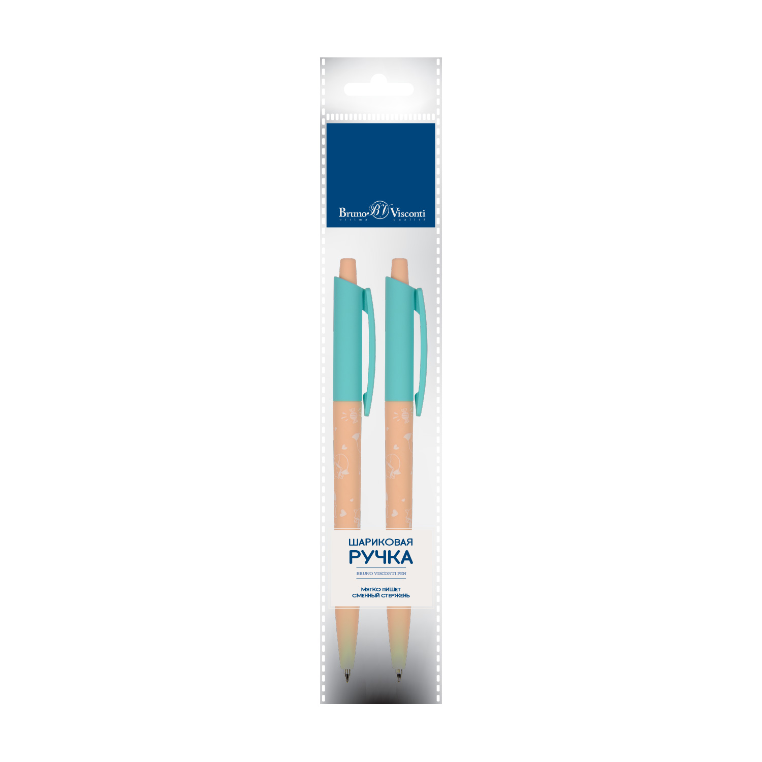 НАБОР ИЗ 2-Х РУЧЕК "HappyClick. Зефирные животные. Лисички" ШАРИКОВАЯ, 0.5 ММ, СИНЯЯ