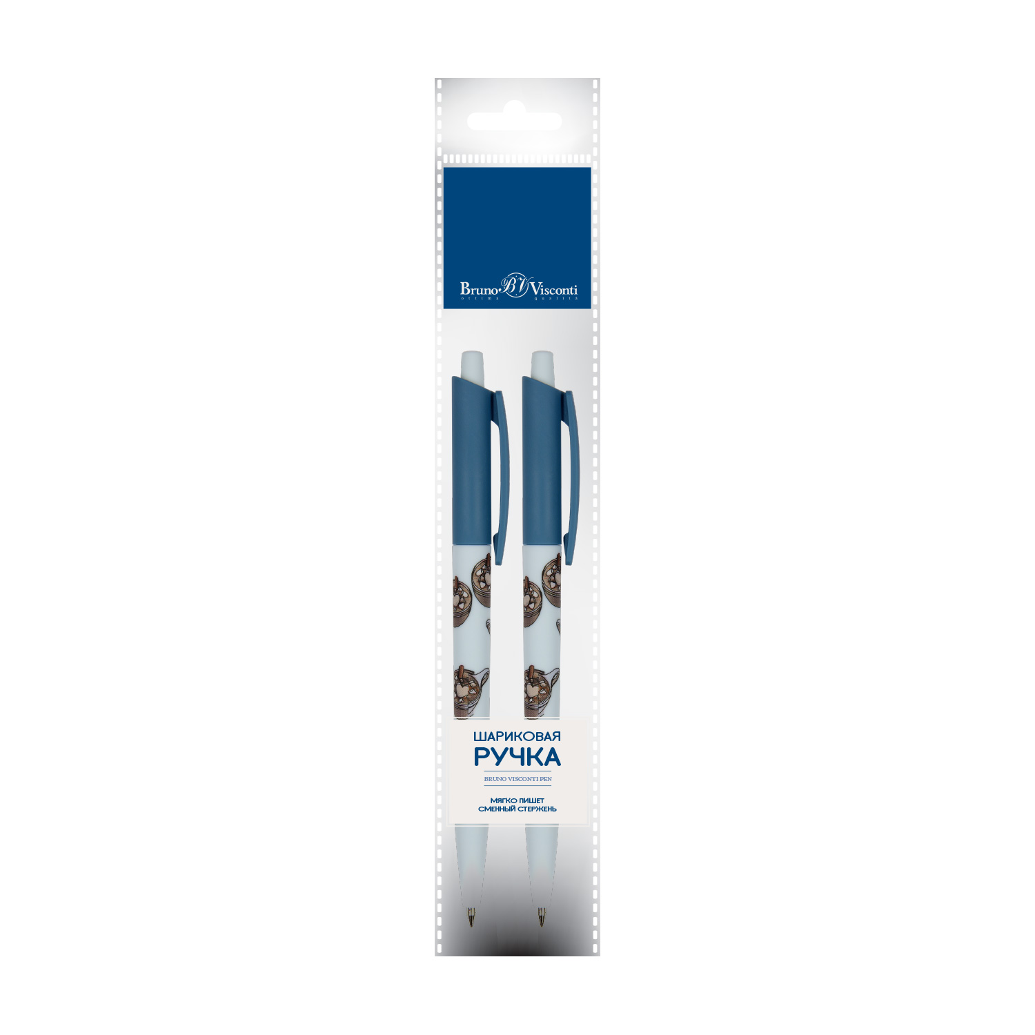 НАБОР ИЗ 2-Х РУЧЕК "HappyClick. Кофемания. Горячий шоколад" ШАРИКОВАЯ, 0.5 ММ, СИНЯЯ