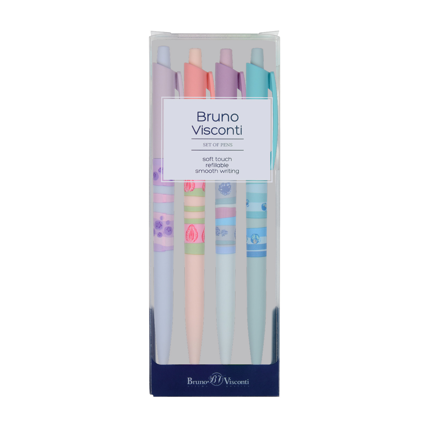 НАБОР ИЗ 4-Х РУЧЕК "HappyClick. Ягодные тортики" ШАРИКОВЫХ, 0.5 ММ, СИНЯЯ