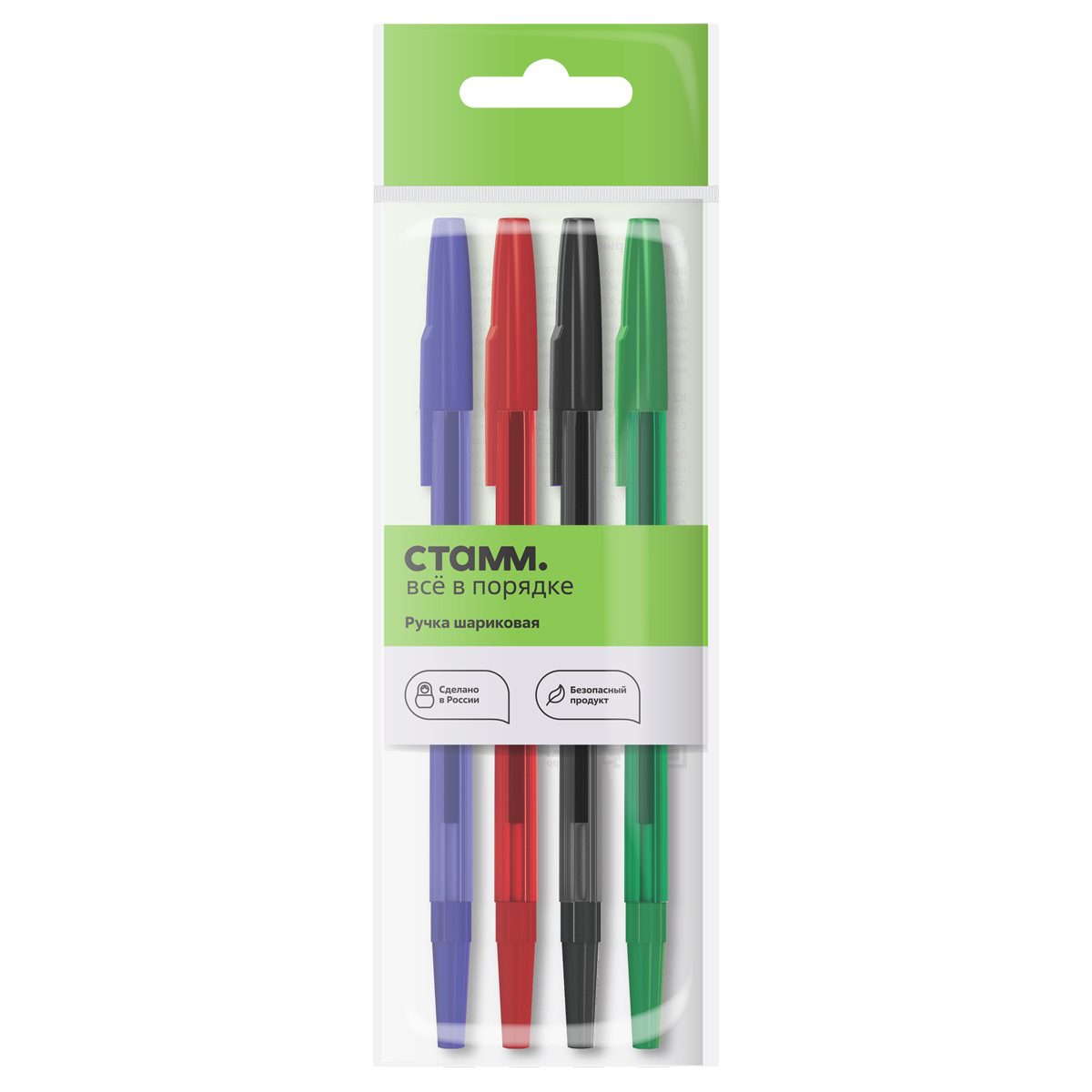 Набор шариковых ручек СТАММ "049" 4шт., 04цв., 0,7мм, тонированный корпус, пакет с европодвесом