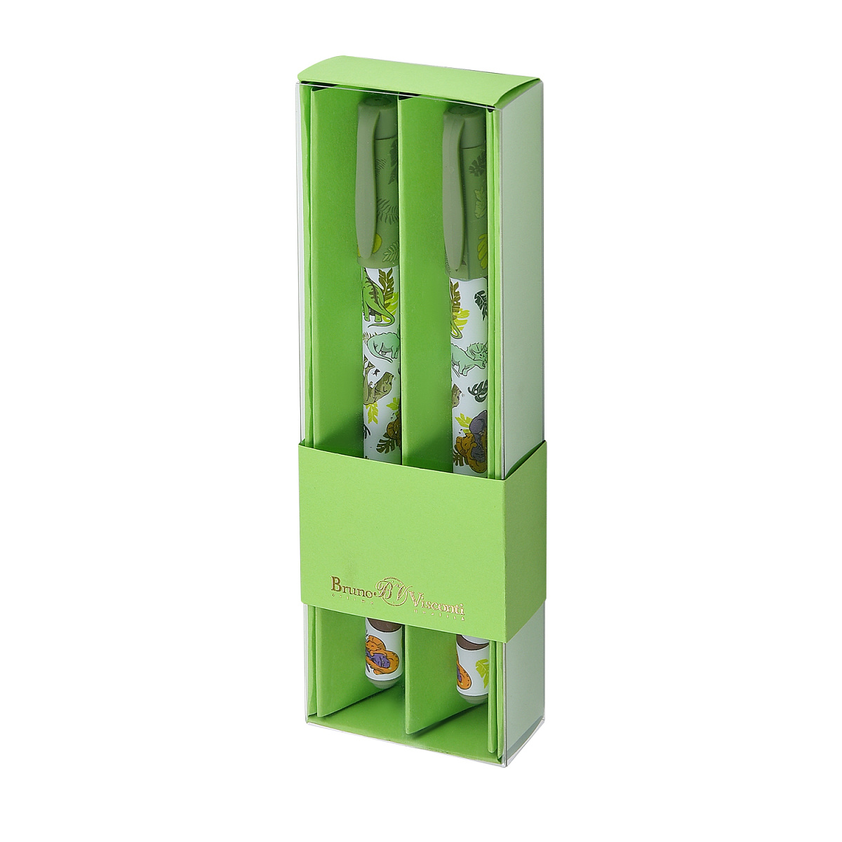 НАБОР ИЗ 2-Х РУЧЕК "HappyWrite. Динозавры"ШАРИКОВАЯ 0.5 ММ, СИНЯЯ (салатовый футляр)