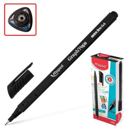 Ручка капиллярная MAPED (Франция) "Graph' Peps", ЧЕРНАЯ, трехгранная, корпус черный, линия письма 0,4 мм, 749111