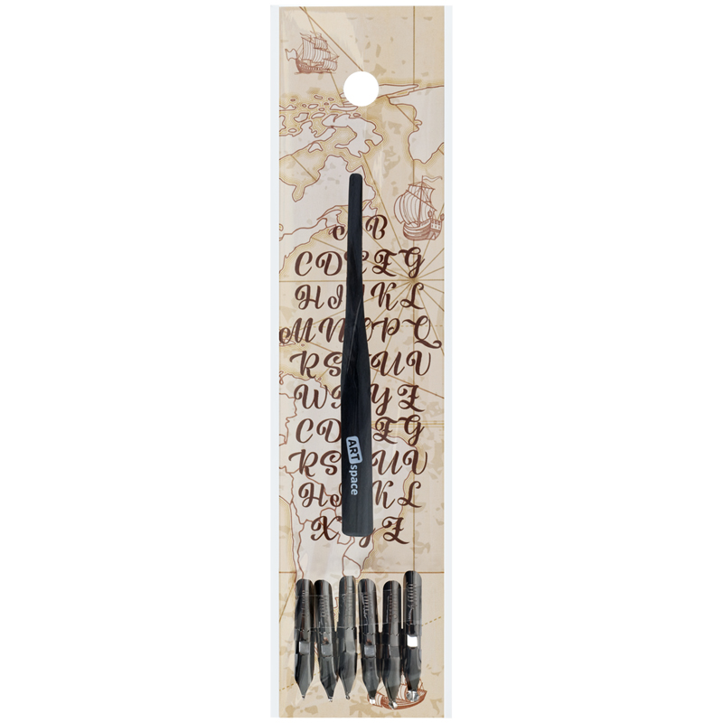 Перья каллиграфические ArtSpace, круглые, 6шт. с держателем, в пакете