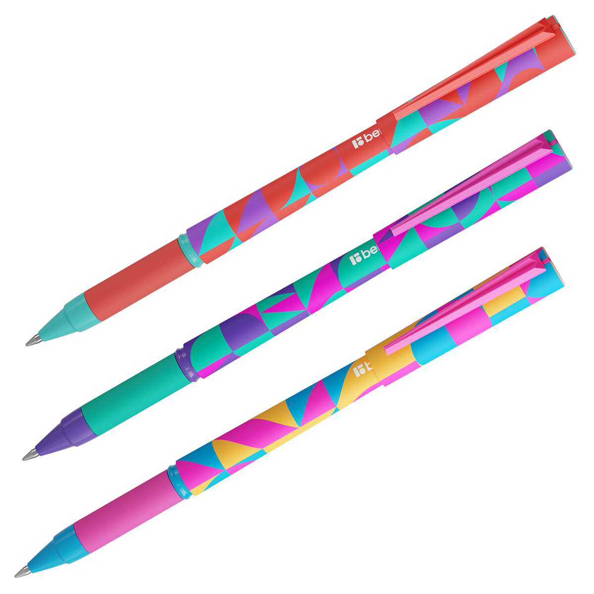 Ручка шариковая Berlingo "Neonometry" синяя, 0,7мм, грип, рисунок на корпусе, ассорти
