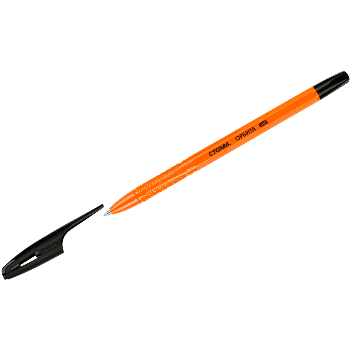 Ручка шариковая СТАММ "Орбита 100" черная, 0,7мм, оранжевый корпус