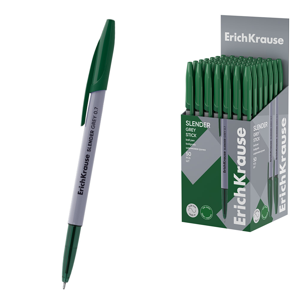 Ручка шариковая ErichKrause Slender Stick Grey 0.7, Super Glide Technology, цвет чернил зеленый (в коробке по 50 штук)
