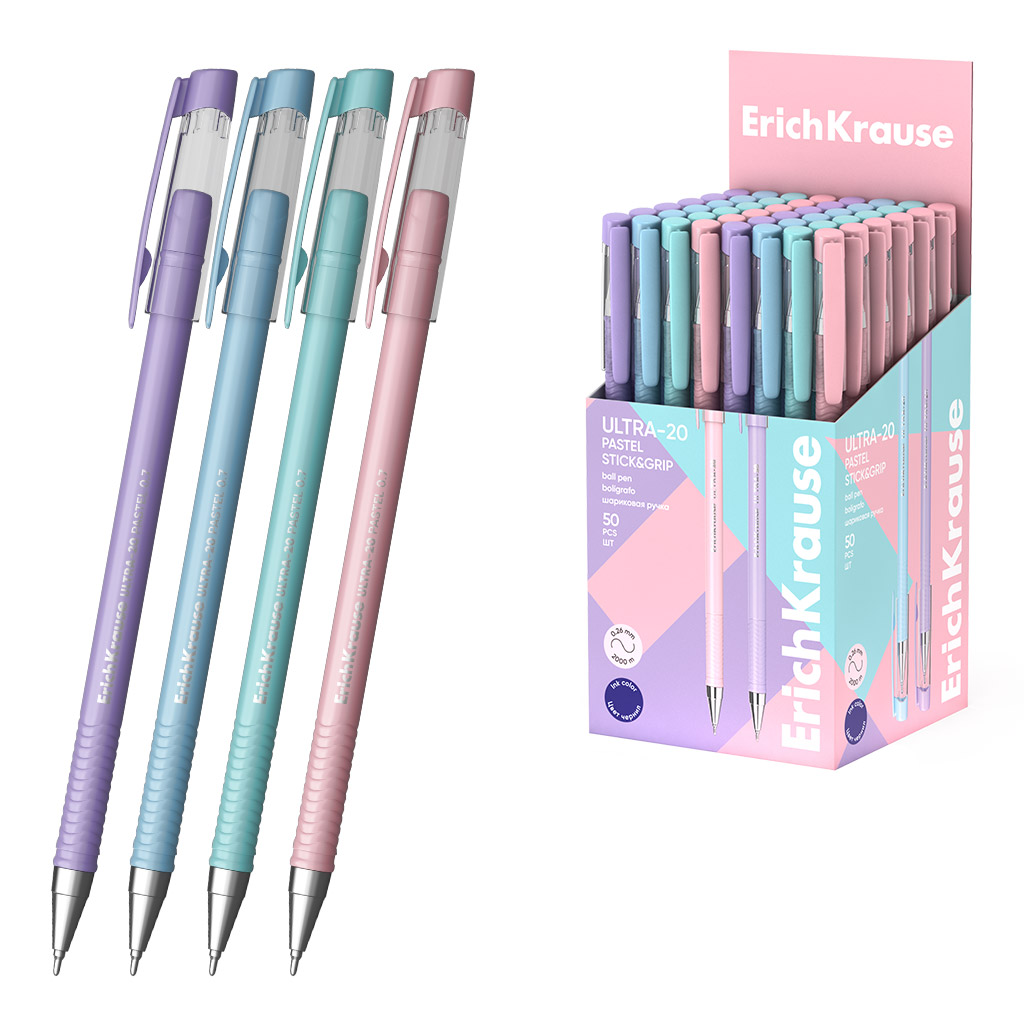 Ручка шариковая ErichKrause ULTRA-20 Stick Pastel 0.7, Super Glide Technology, цвет чернил синий (в коробке по 50 штук)