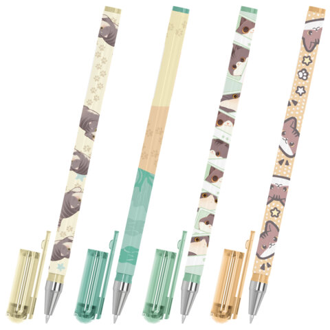 Ручка шариковая с принтом BRAUBERG "МИЛЫЕ КОТЫ", СИНЯЯ, SOFT TOUCH покрытие, узел 0,7 мм, линия письма 0,35 мм, 144478