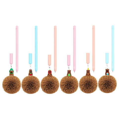 Ручка с пушистой подвеской шариковая FUNSTER "FLUFFY CAPY", СИНЯЯ, пишущий узел 0,7 мм, 144521
