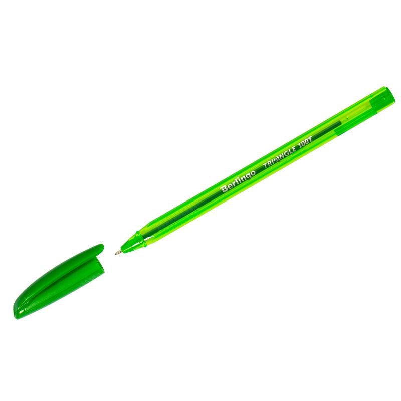 Ручка шариковая Berlingo "Triangle 100T" зеленая, 0,7мм, трехгран., игольчатый стержень. CBp_07109
