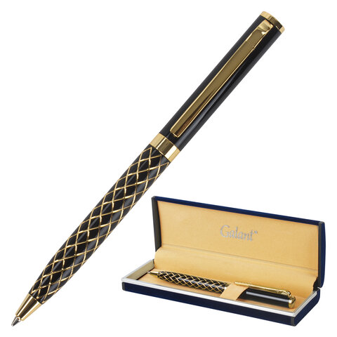 Ручка подарочная шариковая GALANT "Klondike", корпус черный с золотистым, золотистые детали, пишущий узел 0,7 мм, синяя, 141357