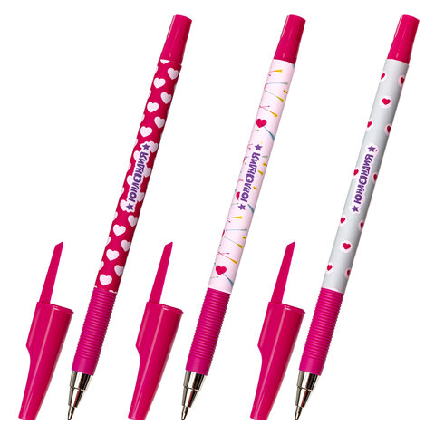 Ручка шариковая ЮНЛАНДИЯ "HEARTS", синяя, SOFT TOUCH покрытие, узел 0,7 мм, линия письма 0,35 мм, 143729