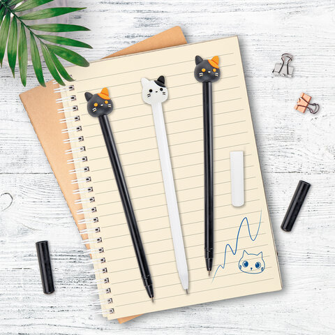 Шариковая ручка масляная ЮНЛАНДИЯ "Кошка" с милой игрушкой на корпусе. Шариковая ручка серии FUNNY YUMMY с ярким корпусом и оригинальным дизайном топперов в виде кошки. Благодаря привлекательному дизайну ее не захочется выпускать из рук, а чернила на масляной основе обеспечат мягкое плавное письмо. Диаметр игольчатого пишущего узла, равный 0,7 мм, создает линию письма, равную 0,35 мм. Длина сменного стержня составляет 129 мм. Цвет чернил - синий.Удобный стакан для размещения ручек в розничном магазине.
