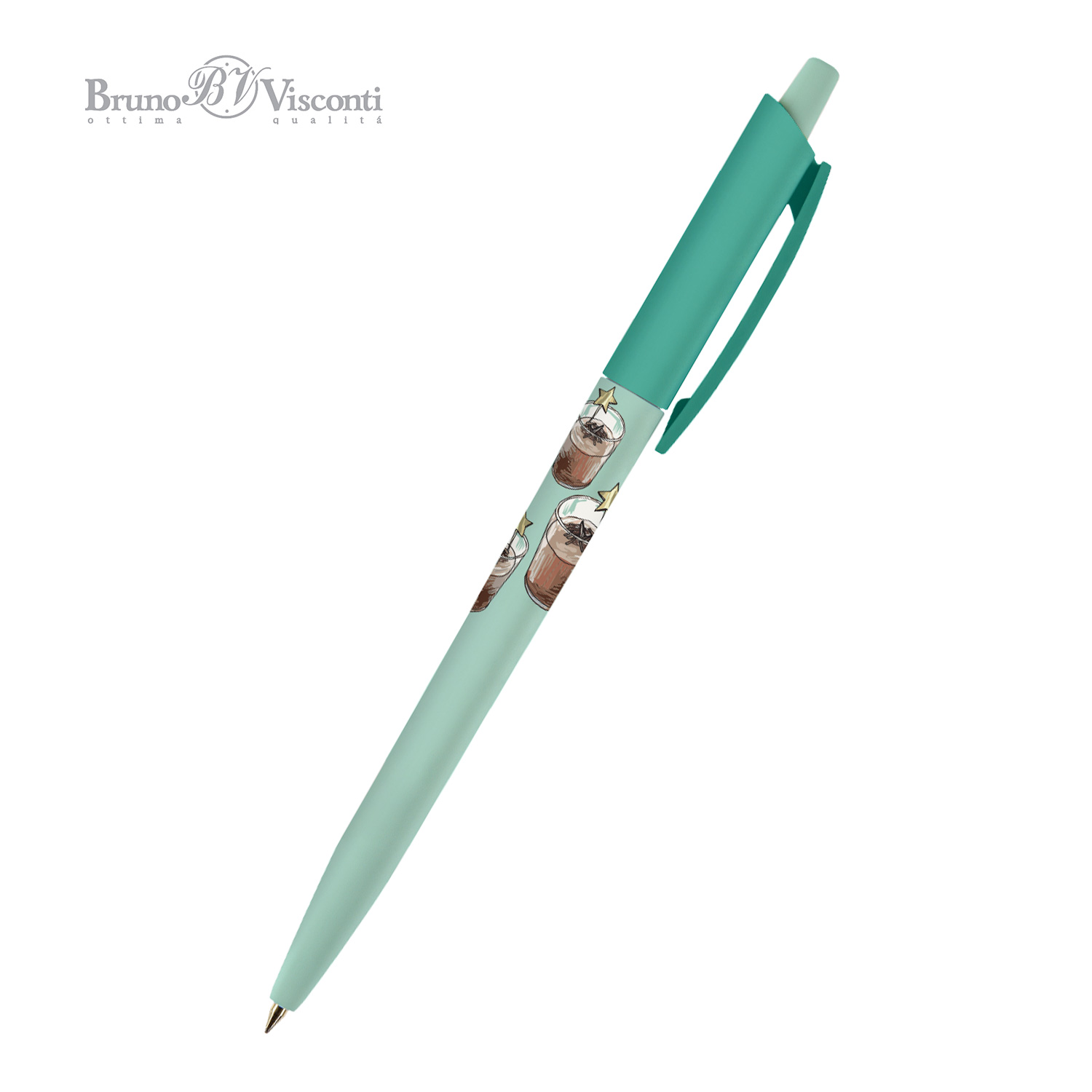 РУЧКА "HappyClick. Кофемания. Шоколадный коктейль" ШАРИКОВАЯ 0.5 ММ, СИНЯЯ