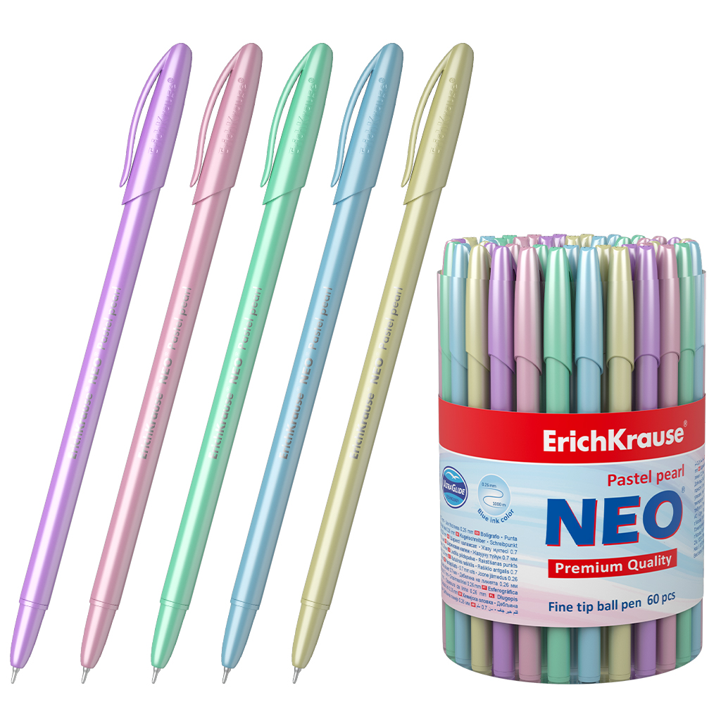 Ручка шариковая ErichKrause® Neo® Pastel pearl, цвет чернил синий (в тубусе по 60 штук)