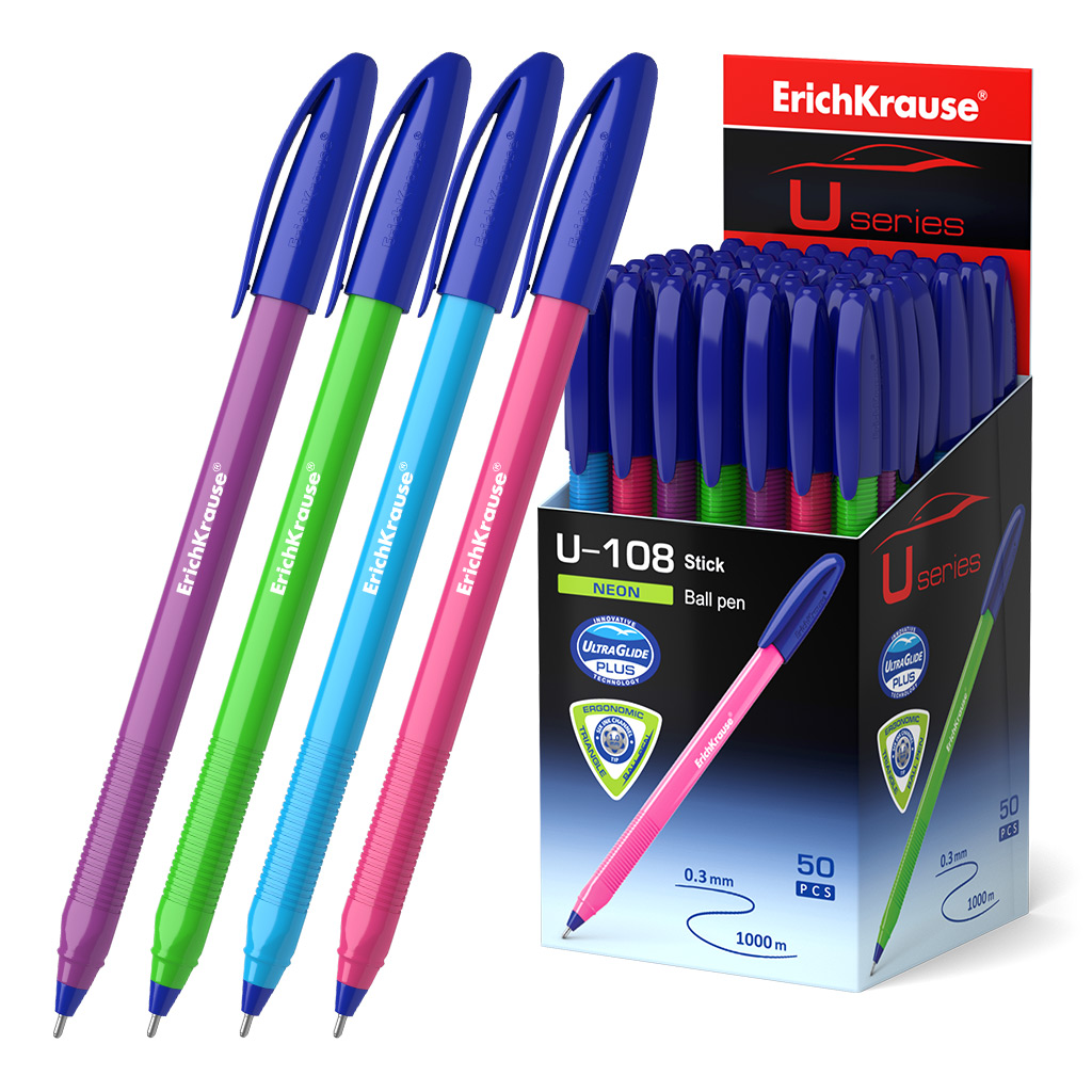 Ручка шариковая ErichKrause® U-108 Neon Stick 1.0, Ultra Glide Technology, цвет чернил синий (в коробке по 50 штук)