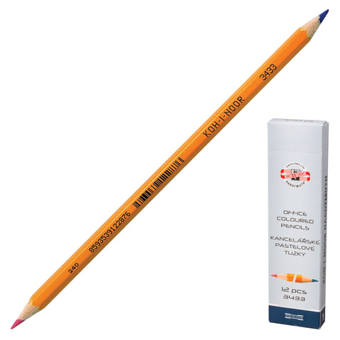 Карандаш двухцветный KOH-I-NOOR, 1 шт., красно-синий, грифель 3,2 мм, желтый корпус, 34330EG001KS