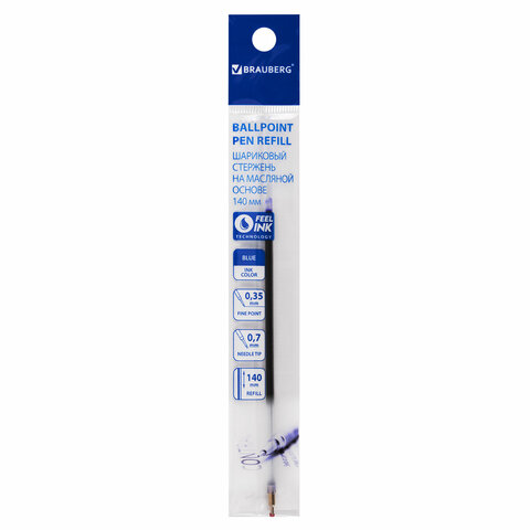 Стержень шариковый масляный BRAUBERG 140 мм, СИНИЙ, игольчатый узел 0,7 мм, линия письма 0,35 мм, 170402