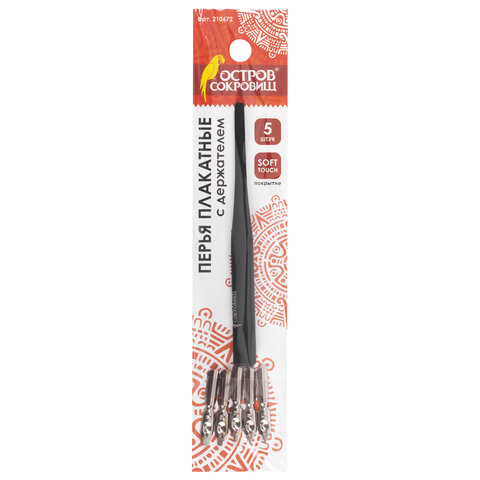 Перья плакатные ОСТРОВ СОКРОВИЩ, набор 5 шт., с держателем, блистер, 210672