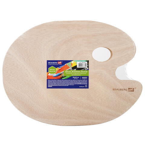 Палитра художественная BRAUBERG ART CLASSIC предназначена для живописи. Прочная деревянная палитра с гладкой поверхностью подходит для смешивания масляных, акриловых и темперных красок, устойчива к воздействию разбавителей и растворителей. Палитру овальной формы удобно держать в руке.Размеры - 30х40 см, толщина - 5 мм.Художественные палитры пригодятся школьникам, студентам, участникам мастер-классов, ученикам художественных школ, студий и училищ, живописных мастерских, так как у них может быть широкая гамма размеров и видов. С их помощью можно создать даже иллюстрации к сонетам Шекспира. Эти палитры используют любители для хобби и профессионалы, которые стремятся достичь такой же славы, как Пикассо (Picasso), Малевич, Шагал, Моне (Claude Monet), Рембрандт (Rembrandt), Дали (Salvador Dali), Уорхол (Andy Warhol), Рублёв, Фрида Кало (Frida Kahlo), Ван Гог (Vincent van Gogh), Тициан (Tician), Анри Матисс (Henri Matisse) Леонардо да Винчи (Leonardo da Vinci) и другие популярные художники и артисты. Творчество - луч света в серых буднях!