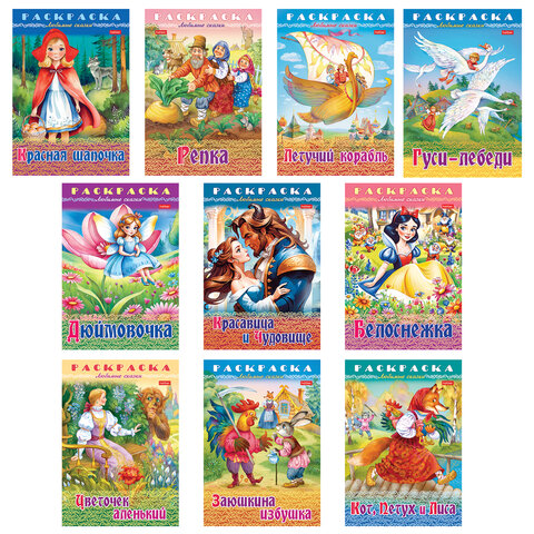 Книжка-раскраска "Любимые сказки №1", КОМПЛЕКТ 10 шт., 16 стр., 210х290 мм, HATBER