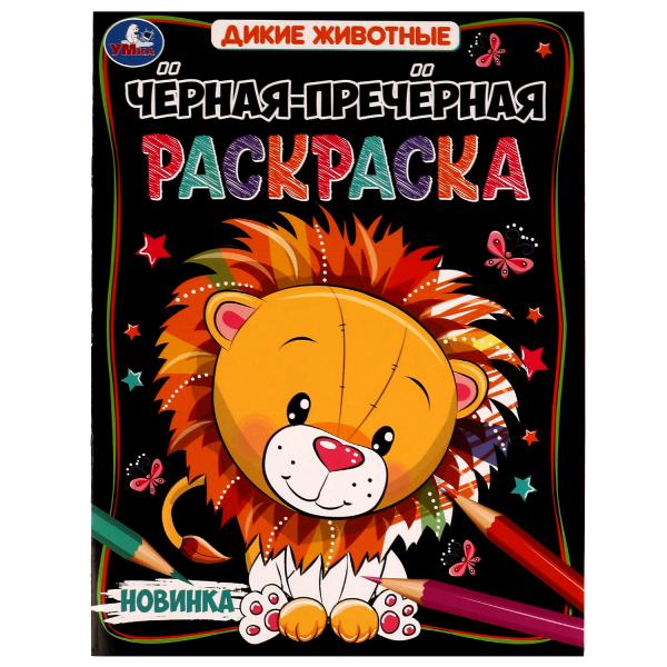 Дикие животные. Чёрная-пречёрная раскраска. 16 наклеек. 200х260 мм. Скрепка. 8 стр. Умка