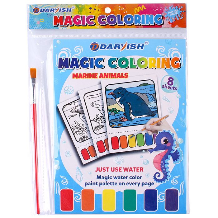 Раскраска волшебная "Морские обитатели" 21*16см + кисточка + сух.краски