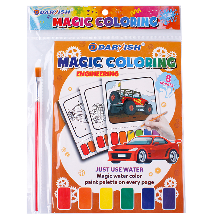 Раскраска волшебная "Техника" 21*16см + кисточка + сух.краски