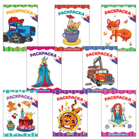 В книжке-раскраске А4 дети найдут множество интересных сюжетов и забавных картинок для раскрашивания. Дайте ребёнку цветные карандаши или краски, и он с удовольствием и пользой проведёт время! Книжка-раскраска научит маленького начинающего художника хорошо разбираться в цветах и поможет пополнить словарный запас. Раскраски способствуют развитию мелкой моторики, образного мышления и, разумеется, усидчивости и внимательности.Ассорти - без возможности выбора.