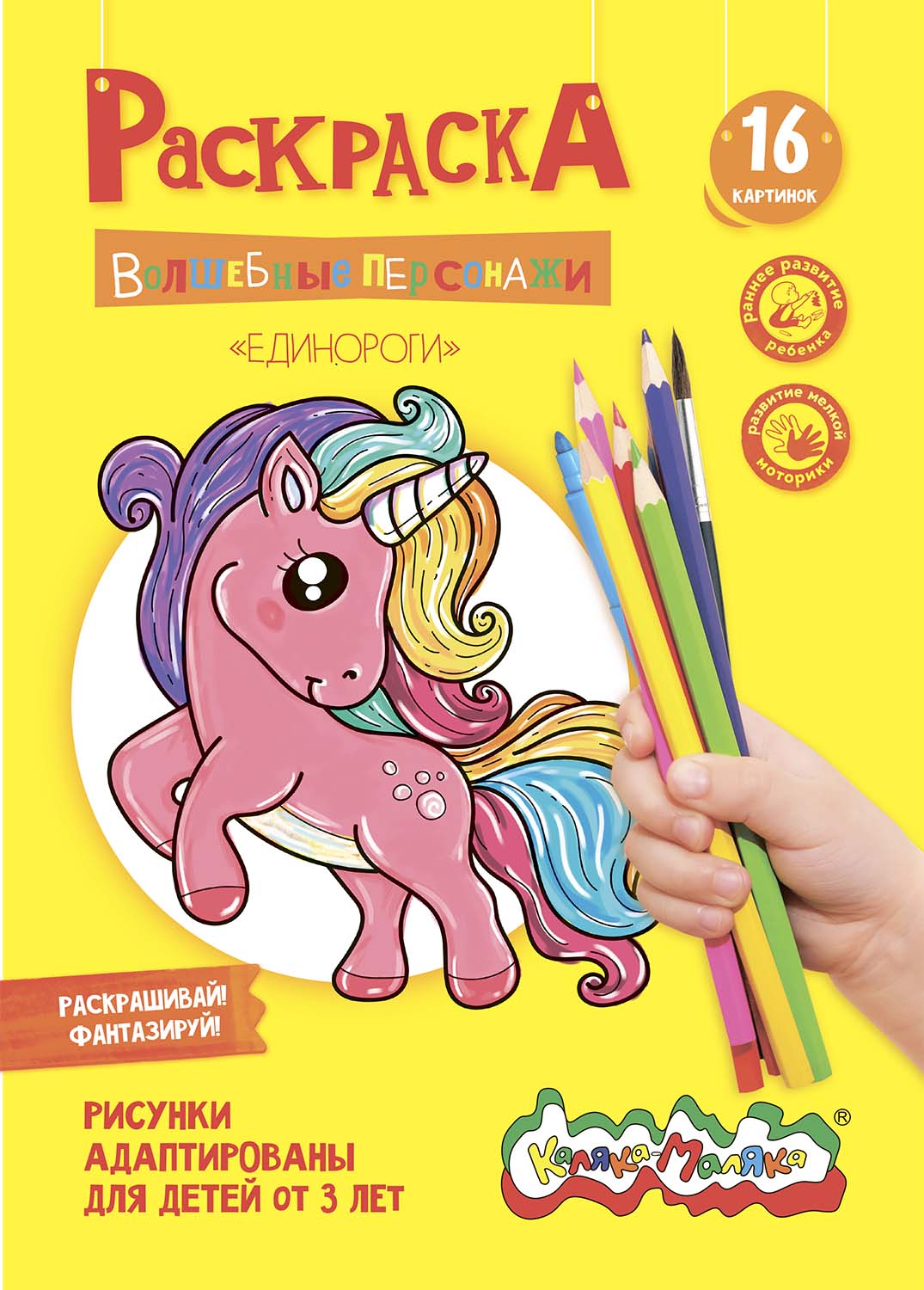 Раскраска детская Каляка-Маляка ВОЛШЕБНЫЕ ПЕРСОНАЖИ. Единороги А4 210х297 мм скреп. 4 л. от 3 лет для девочек