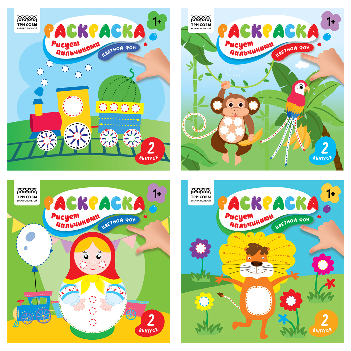 Раскраска пальчиковая с цв. фоном 190*190, 8 стр., ТРИ СОВЫ "Рисуем пальчиками. Выпуск №2"