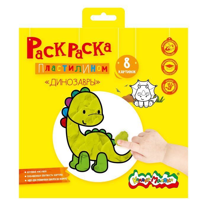 Раскраска пластилином Каляка-Маляка ДИНОЗАВРЫ 8 карт. 200х200 мм в папке конверте