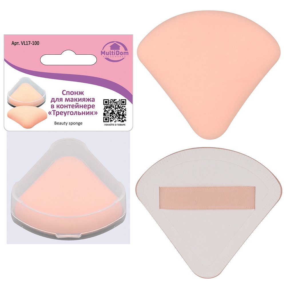 Спонж для макияжа в контейнере "Треугольник". Размер: спонж- 6х6,5х1см, контейнер-7х6,5х2,5см.
