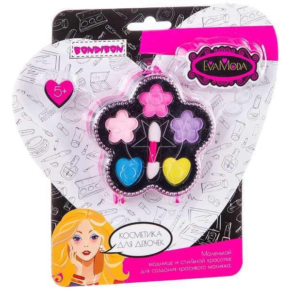 Набор детской декор. косметики Bondibon Eva Moda, CRD 19х19 см- цветок с тенями для век 5 оттенков ( ВВ2240