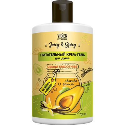 Family Cosmetics Juicy & Spicy Крем-гель для душа ПИТАТЕЛЬНЫЙ "Авокадо и Ваниль", 700мл FJS-10172