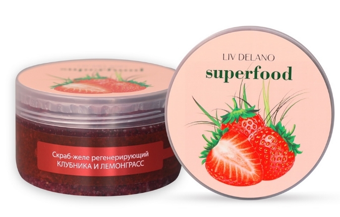 LIV DELANO SUPERFOOD Скраб-желе регенерирующий КЛУБНИКА И ЛЕМОНГРАСС, 240г