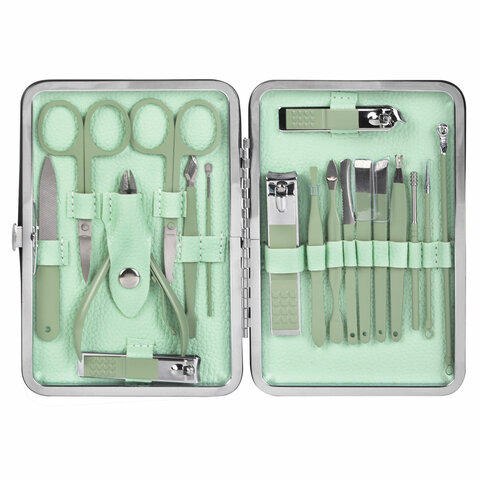 Универсальный набор для маникюра и педикюра 18 в 1 в футляре, STANDARD, зеленый, WBZ, 609489
