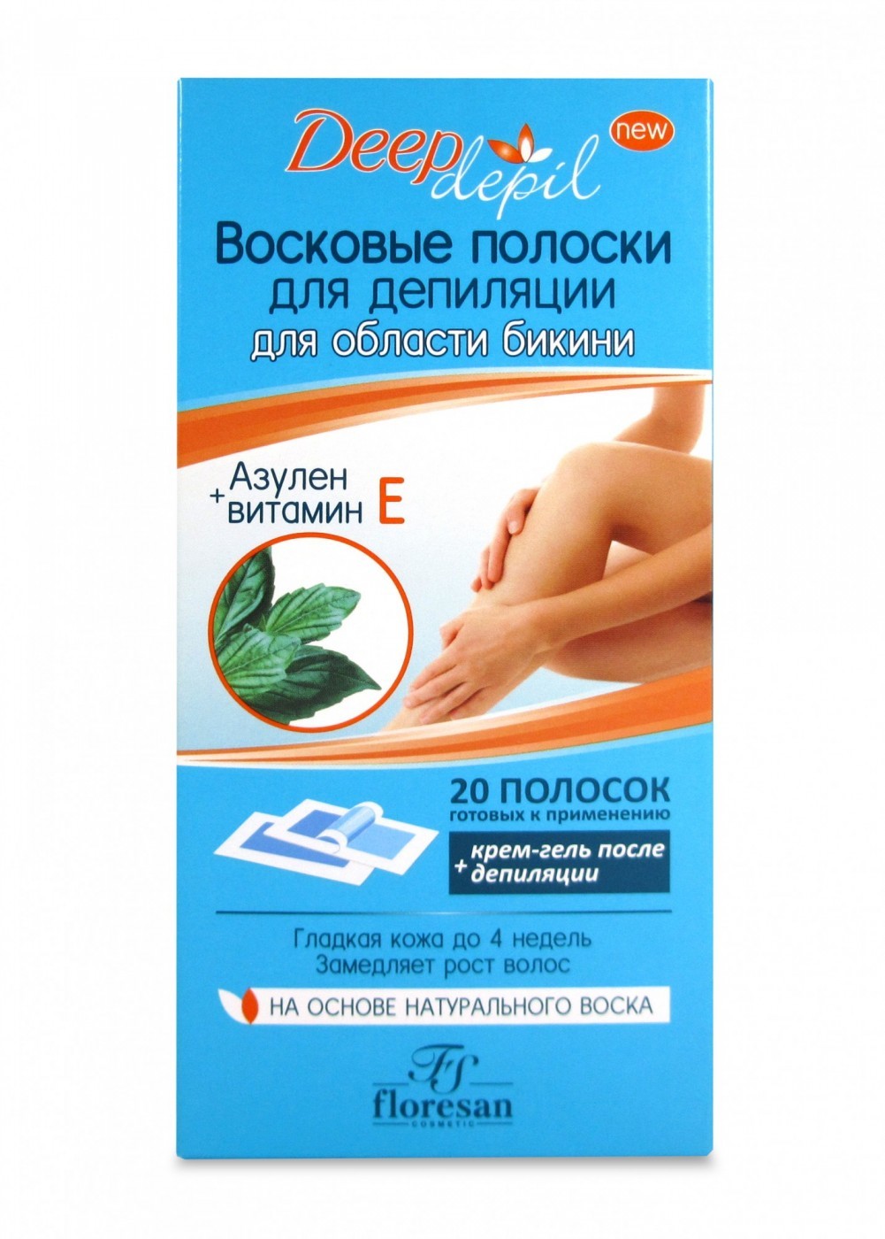 Floresan Deep Depil Восковые полоски для депиляции области бикини с АЗУЛЕНОМ 20полосок, арт.Ф-481