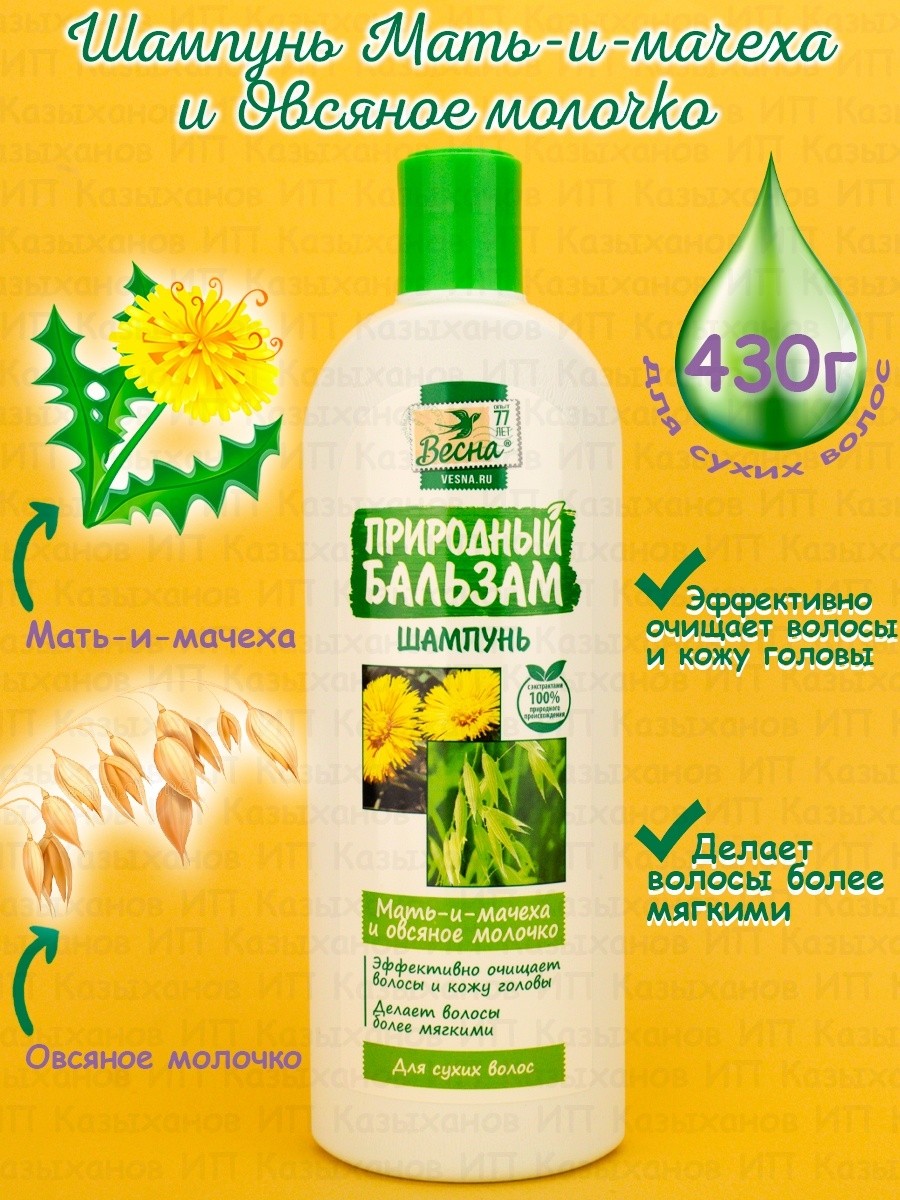 ВЕСНА Шампунь "Мать-и-Мачеха и Овсяное Молочко", 430гр, код 7128