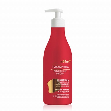 БЕЛИТА СИЛА ГИАЛУРОНА Окрашенные волосы ШАМПУНЬ Запечатывание Цвета для окрашенных и повреждённых волос с маслом Жожоба и Гиалуроном, 500мл