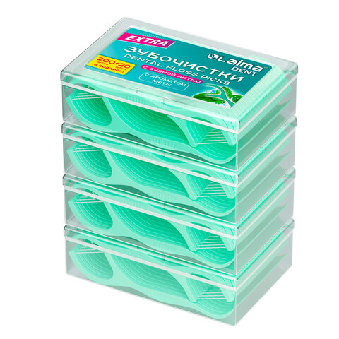 Зубочистки-флоссеры с зубной нитью "200 шт. (4х50 шт.) + 20 в подарок!", в боксе, ВКУС МЯТЫ, LAIMA DENT, 609407