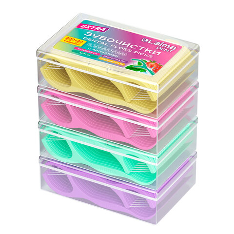 Зубочистки-флоссеры с зубной нитью "200 шт. (4х50 шт.) + 20 в подарок!", ВКУС МЯТЫ И ФРУКТОВ, LAIMA DENT, 609408