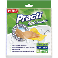 Салфетки для уборки Paclan "Practi", набор 2шт., губчатая, целлюлоза, 18*18см, европодвес